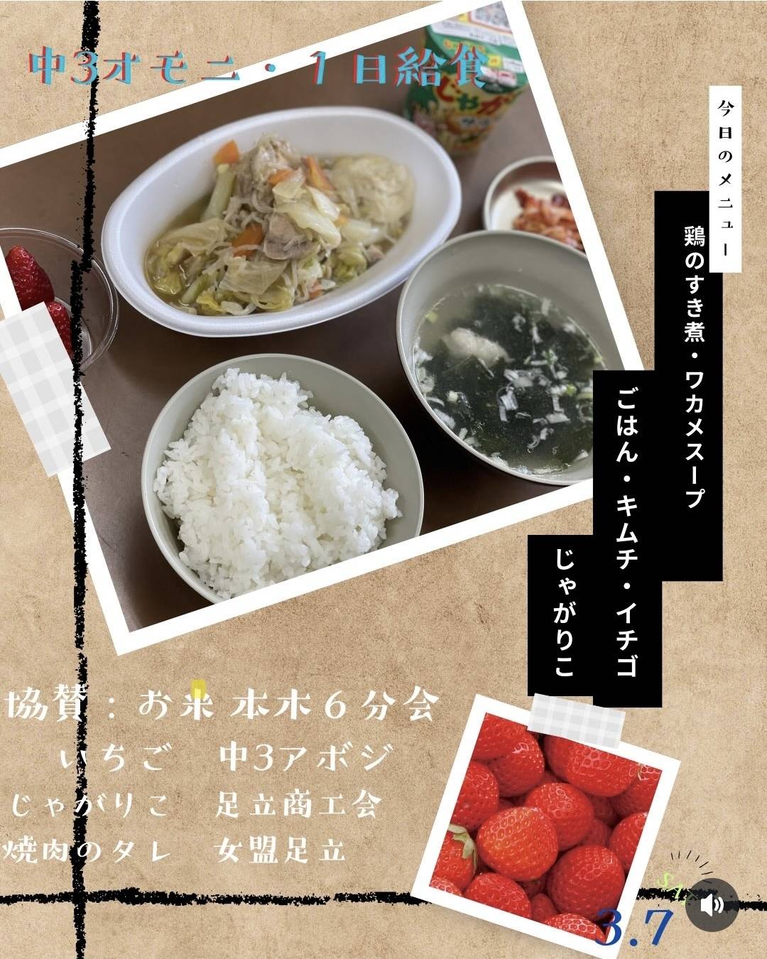 9年間ともに過ごしてきたオンマたちとのチームワーク、そして愛あふれるたくさんの協賛のおかげで、スペシャルな中3給食になったと思います。モリモリ給食を食べる子どもたちの姿を見て、子どもたちが元気に安心して過ごせるハッキョのありがたさを、改めて感じました。