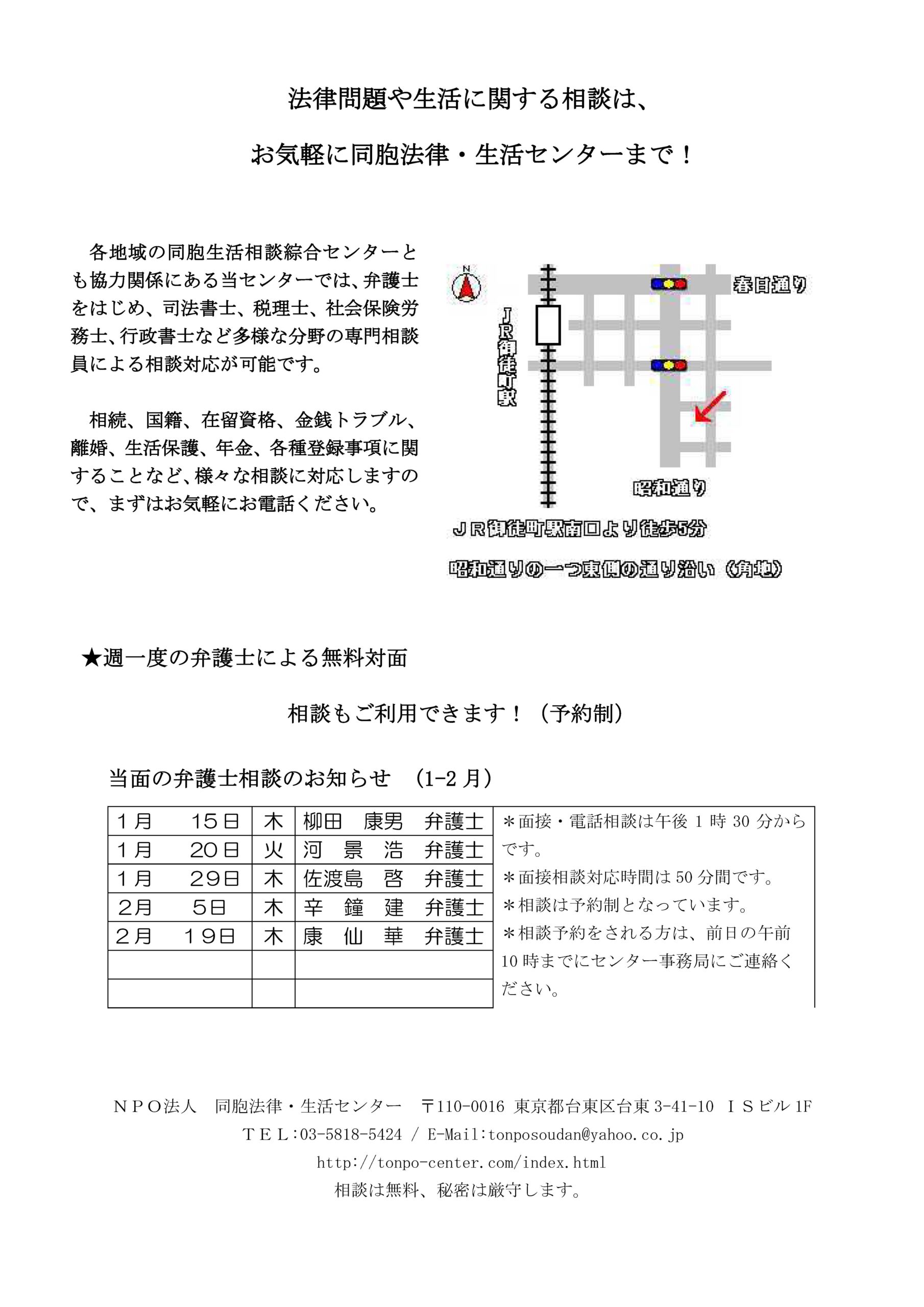 「1月、2月の弁護士無料相談ご案内」 ◇ 足立同胞生活相談センター ◇ ...