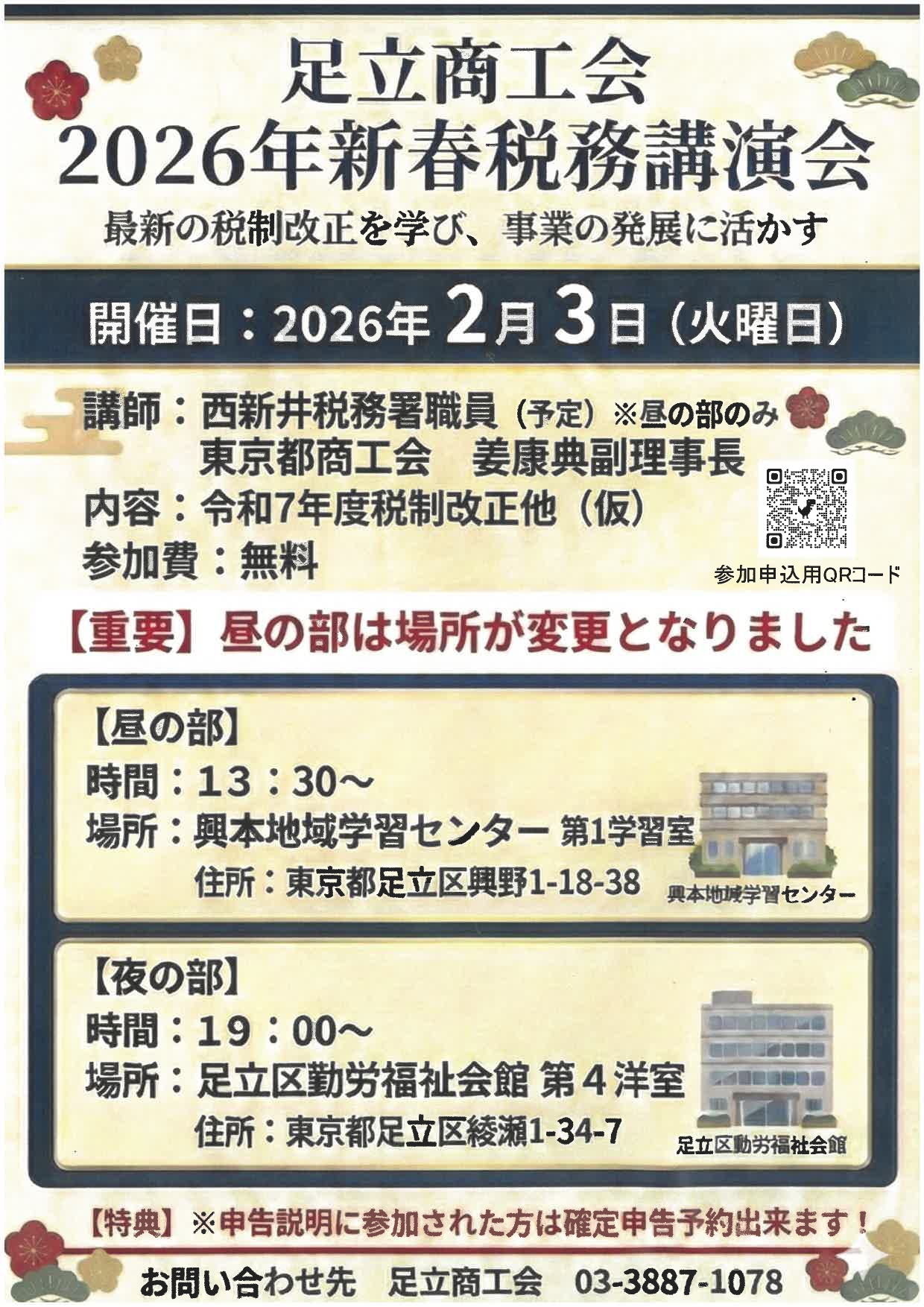 足立商工会新春税務講演会のお知らせ アンニョンハシンミカ、足立商工会の朴京...